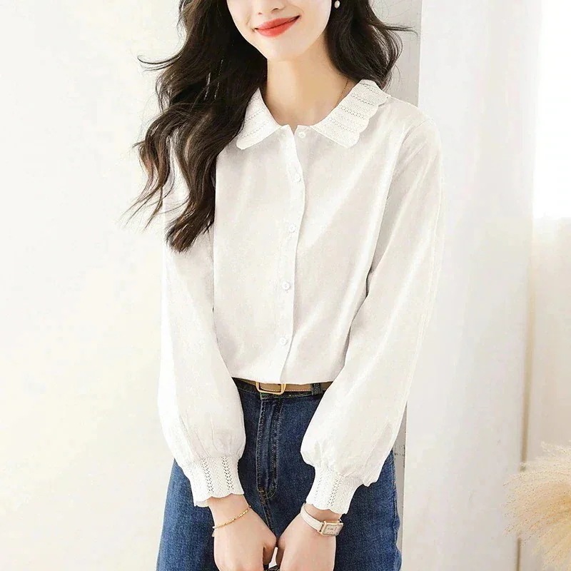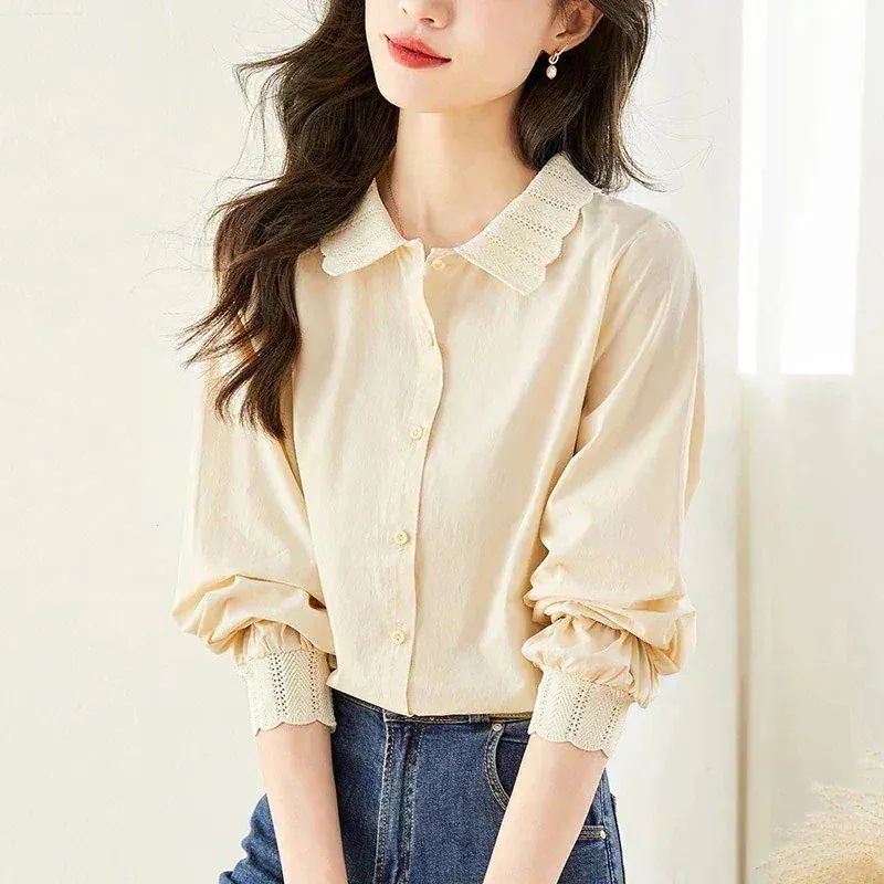 2025 春 夏 シャツ レディース ブラウス レース襟シャツ コットンシャツ 長袖 オフィス シャツ カーディガン 今っぽシアーシャツ 韓国ファッション