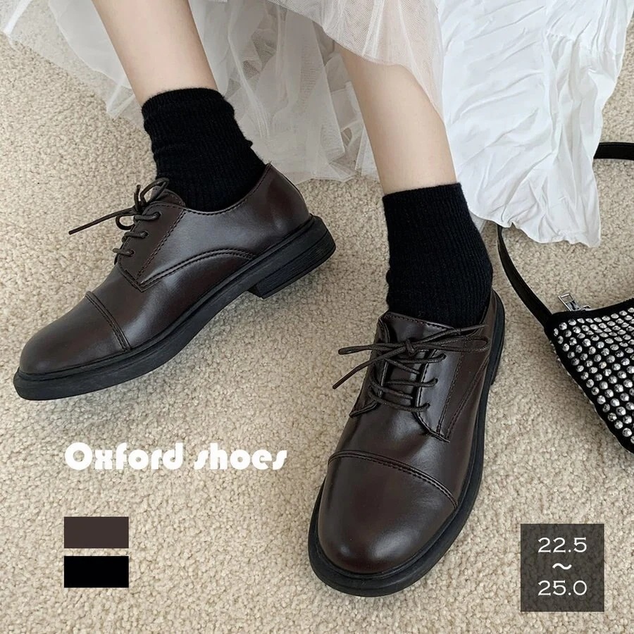 ドレスシューズ レースアップ レディース 靴 ローヒール レザー調 履きやすい カジュアル シンプル