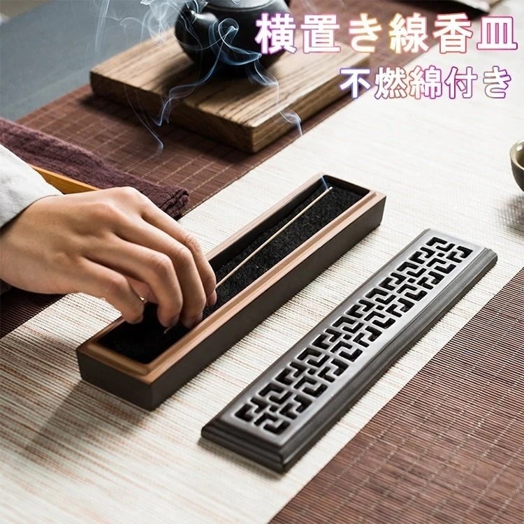 線香立て お香立て 陶磁器 お皿 お香入れ 蓋付き 横置き香炉 香炉 アロマ お香置き ボックス 仏