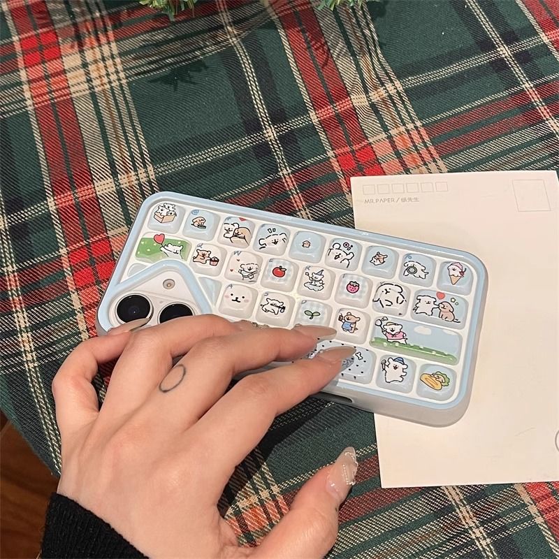 Maltese ライン子犬キーボードケースiphone16pro携帯電話ケースリンゴ15promaxネットレッド14/13爆発金12p