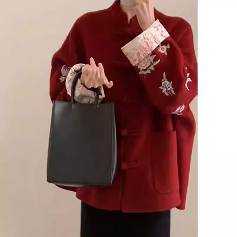 大きいサイズのアウター レディース フルサイズ 秋冬 万能流行感 用綿入れジャケット 2025年新作 中国風刺繍ダブルフェイスウール上着 高級感のあるウールコート