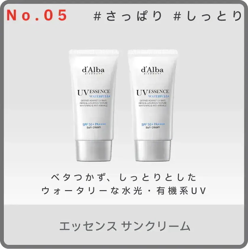 5 5ari*** 2025.12.03 Type:05.ウォータフルエッセンスサンクリーム 1+1オプション : Type:05.ウォータフルエッセンスサンクリーム 1+1 肌タイプ : 混合肌 肌トーン : ブルベ 肌の悩み : しわ・たるみ