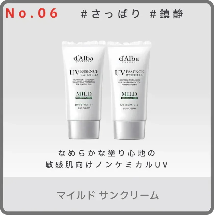 4 5sow*** 2025.12.06 Type:06.ウォータフルマイルドサンクリーム1+1オプション : Type:06.ウォータフルマイルドサンクリーム1+1 肌タイプ : 敏感肌 肌トーン : イエベ