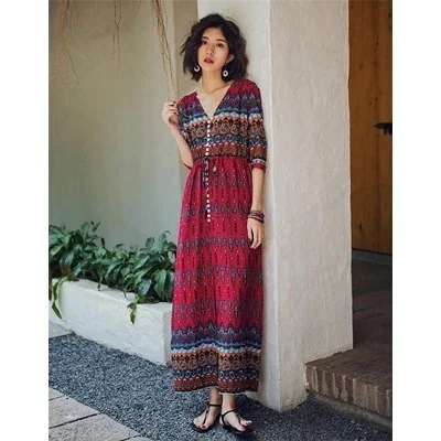大人気! 10%オフクーポン使えますレディース 新作 2026 春夏 ワンピース ボヘミアン タイ風 民族風 7分袖 バカンス 毎年春夏人気のクラシックタイプ