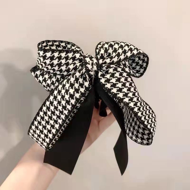 大人気! 新しい千鳥格子の弓リボンバナナクリップヘアクリップヘアアクセサリー春クリップの韓国ファッション ヘアクリップ