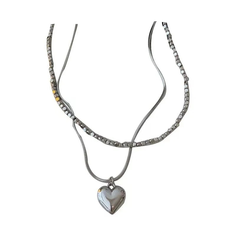 大人気!ユニセックス 二重チタン鋼ハート形鎖骨鎖ネックレス韓国ファッション ネックレス