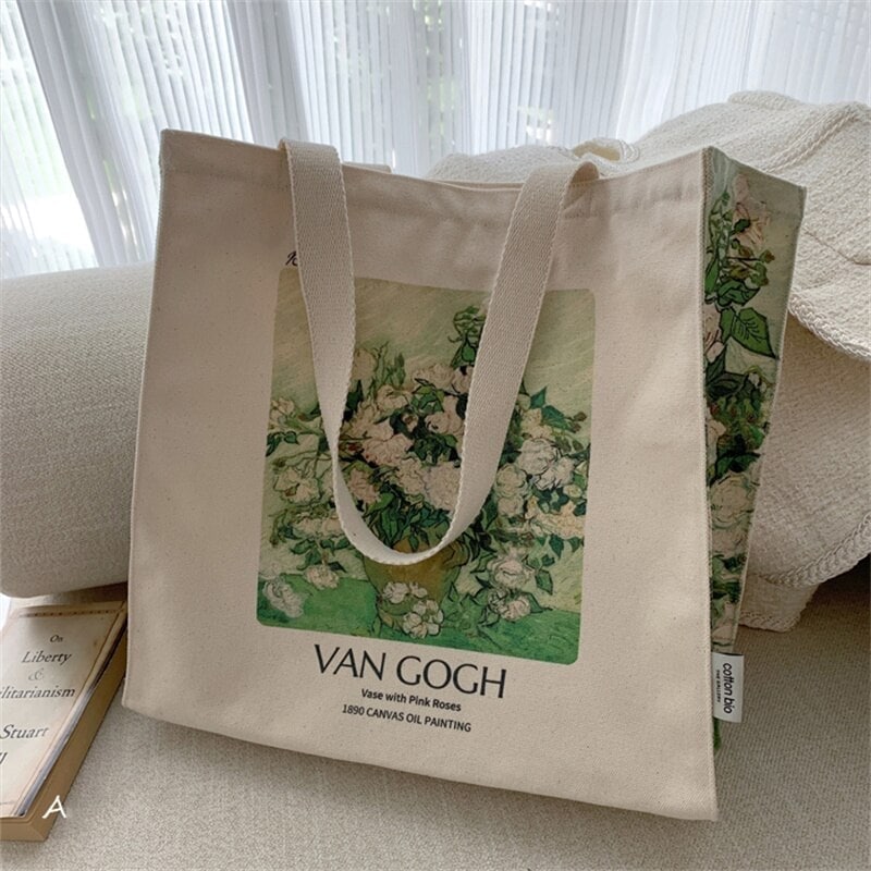 大人気! トートバッグ キャンバス 大容量 A4 ファスナー付き 手提げ 鞄 油絵風 おしゃれ 通勤 トートバッグ