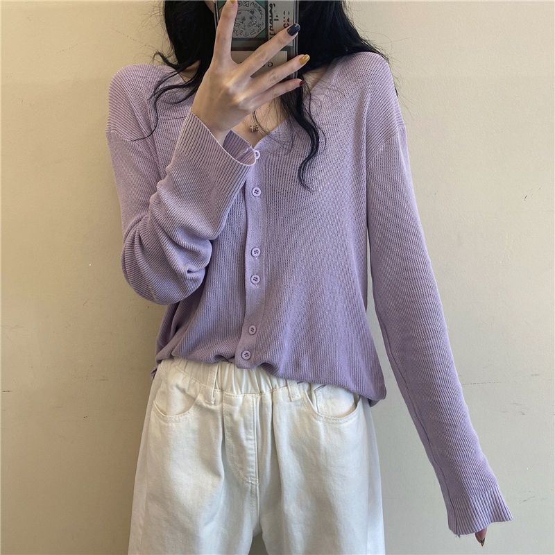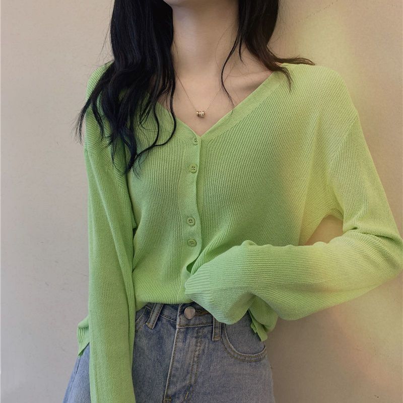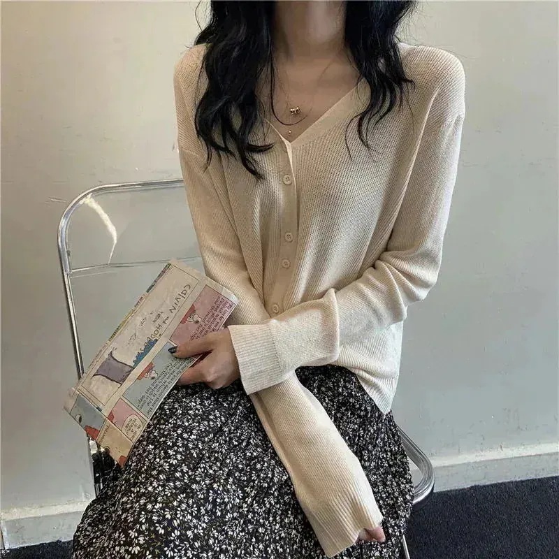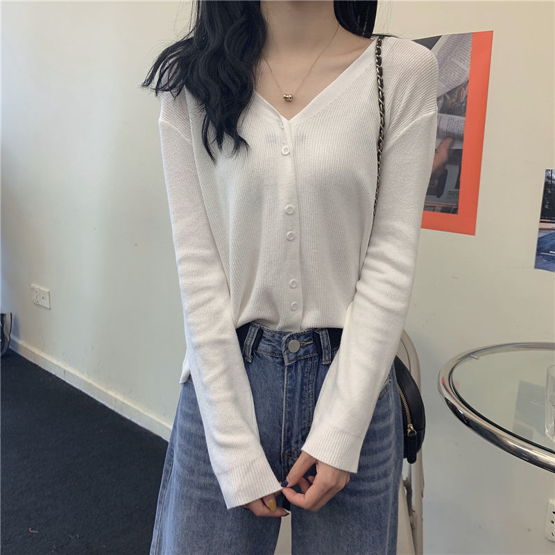 大人気! カーディガン uvカットアイスシルク薄手アウターシャツ2026年初春夏新作ホワイトvネック長袖ニット日焼け止めカーディガンレディース 韓国ファッション