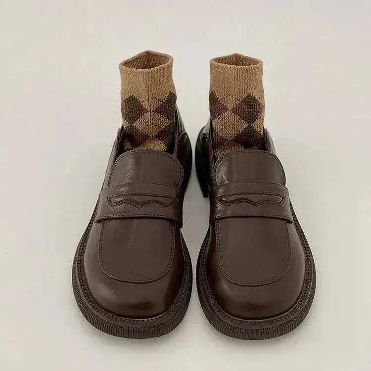 大人気! ヒールパンプス厚底スニーカーシューズモカシンバブーシュローファーフラットパンプスモカシン楽ちん フラットパンプス小さな革靴女性2026春新JK制服単一靴日本システム百レトロと サンダル