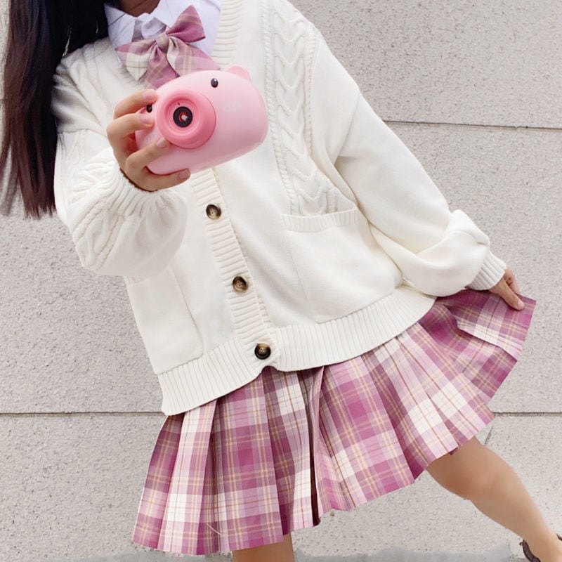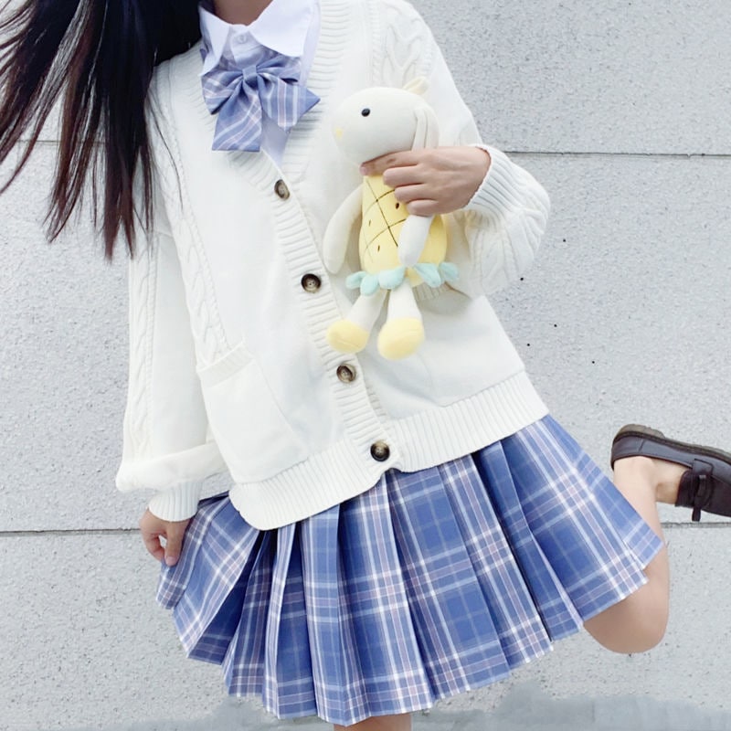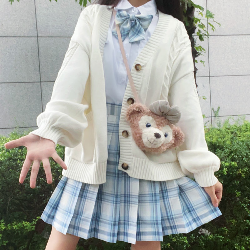 大人気! 制服 カーディガン スカート スクールセーター春秋冬jkカレッジ風リボンニットカーディガン+シャツプリーツスカート 女子高生 セットアップ