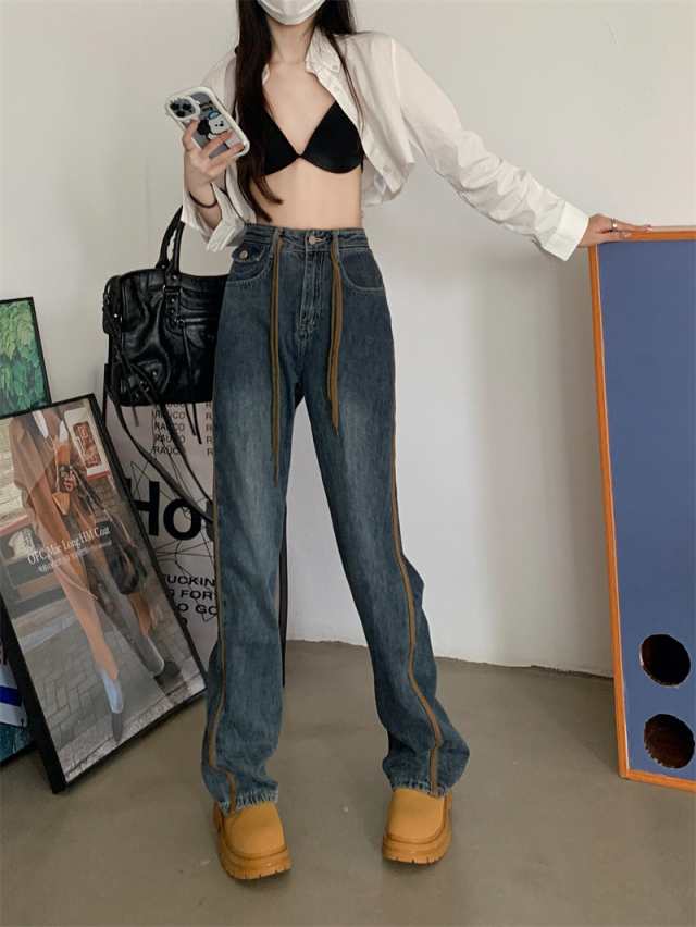 ワイドパンツ レディース ボトムス ジーンズ デニムパンツ ストレート ジーパン ハイウエスト デニムズボン ロング丈 ゆったり