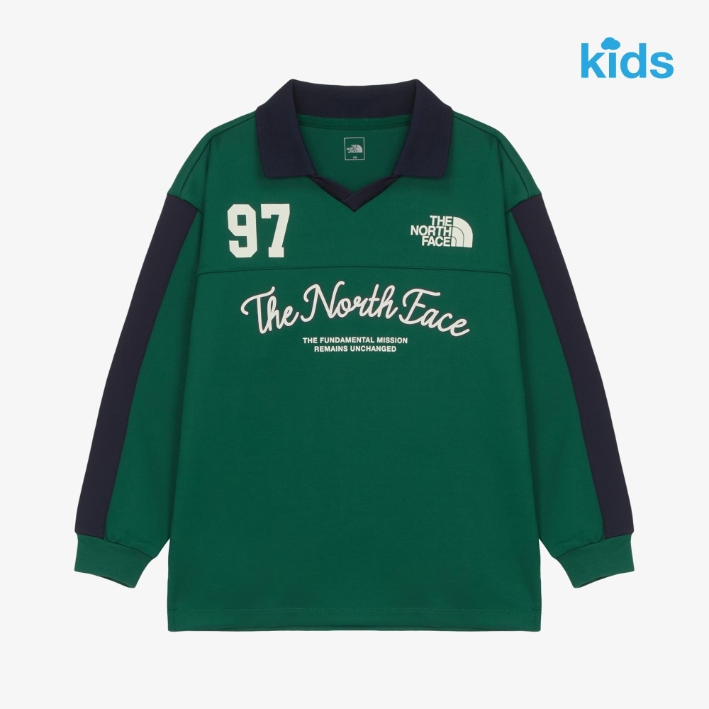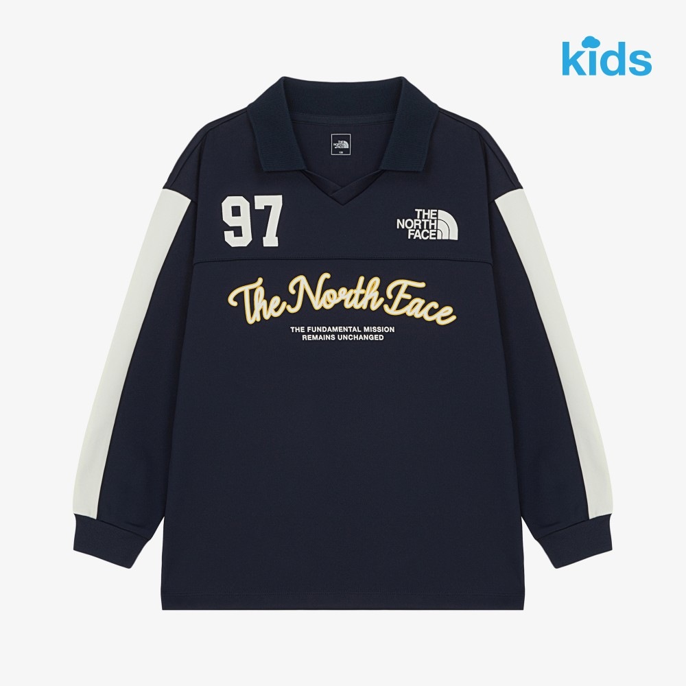 ザノースフェイスNT7TR53 KS STADIUM LS TEE 襟付 長袖 配色スリーブ カレッジロゴ 97プリント スポーティ クラシック リブ袖口 通学 デイリー 男女兼用 伸縮 着回し タウンユース 通学用