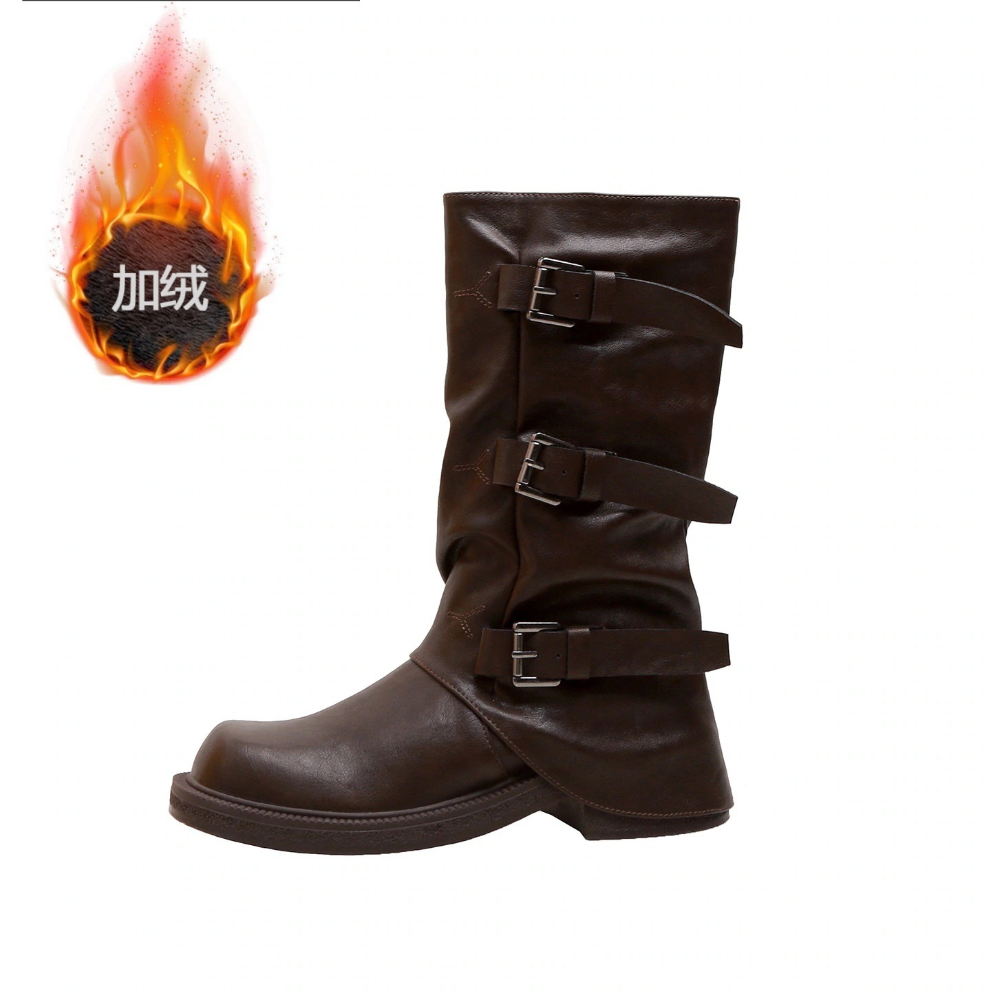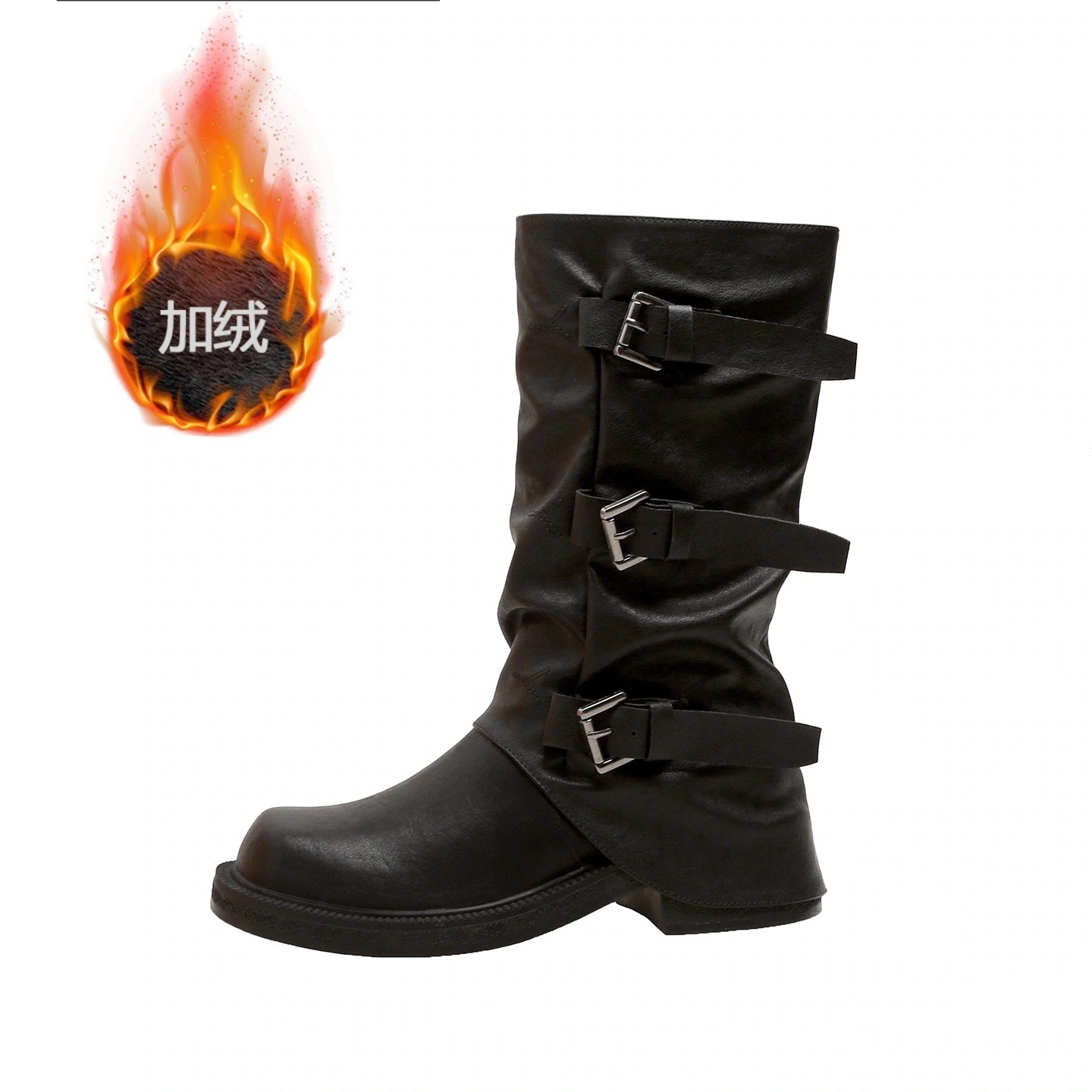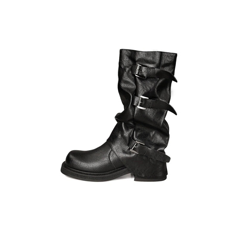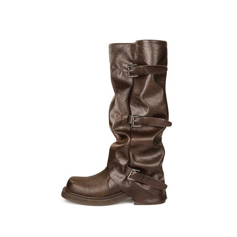 ブーティー 2025 秋冬 新作 ヒールアップ 5cm ベルトバックル スクエア&ラウンドトゥ 琥珀 光沢風 ブーツ ウエスタン 積み上げ ロングブーツ