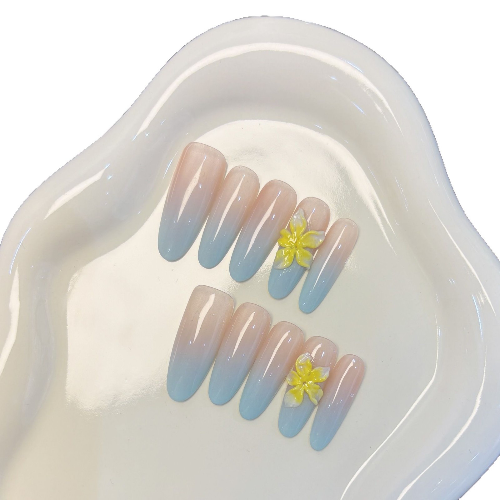 白く見える夏の純ハンドメイドロングネイル完成品上質なネイルアートシールつけ爪