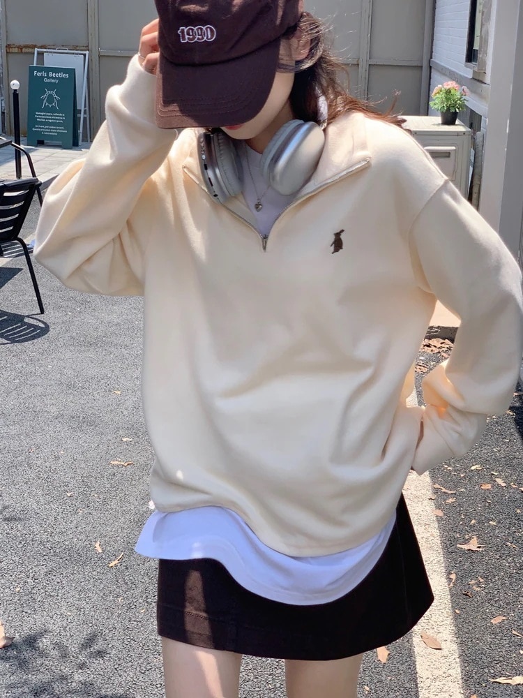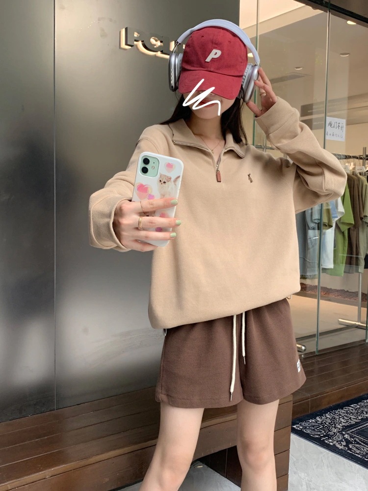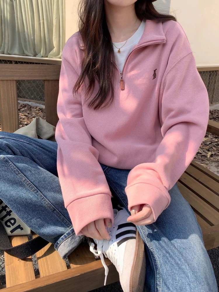 韓国 パーカー ヴィンテージ POLOカラー ハーフジップ トップス レディース 秋 通勤 カジュアル スウェット
