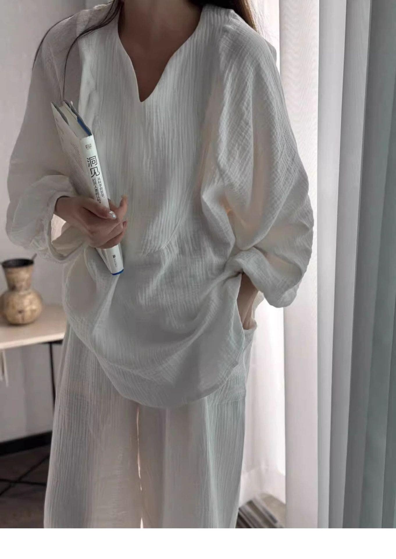 日系 部屋着 秋 パジャマ レディース 快適 肌触り薄い ルームウェア セットアップ 春夏カジュアル ゆったり 二点セットパジャマ 怠惰な風