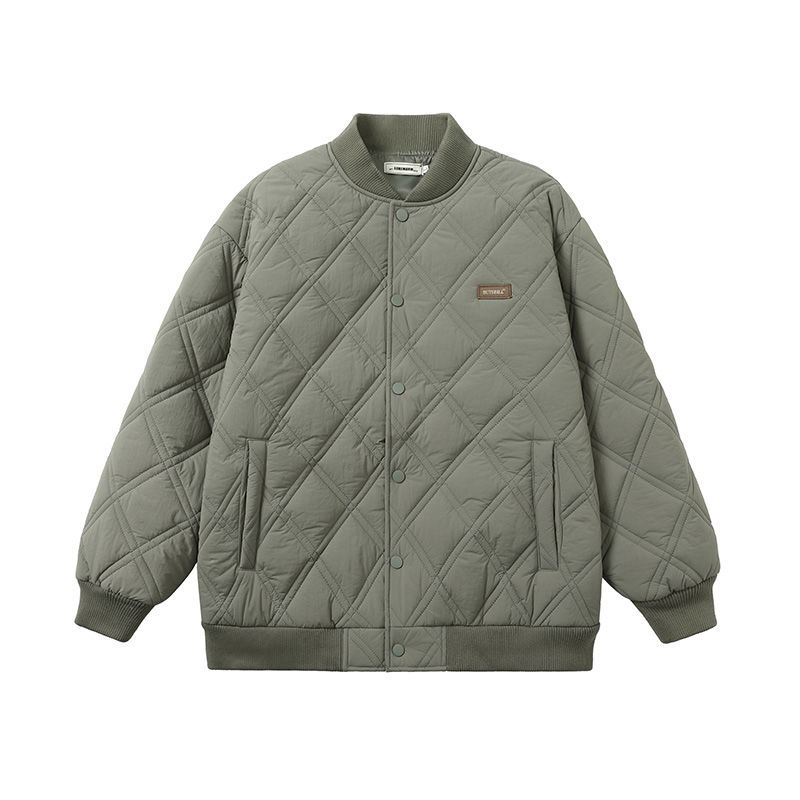 冬アウター 韓国ファッション 冬のひし形チェック保温綿入れ男性ins日系野球服カップルカジュアルファッションブランド綿入れコート ジャケット レディース