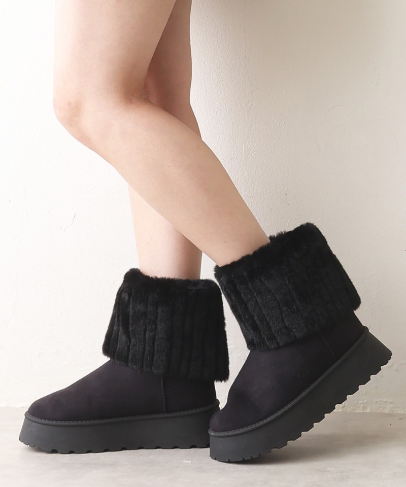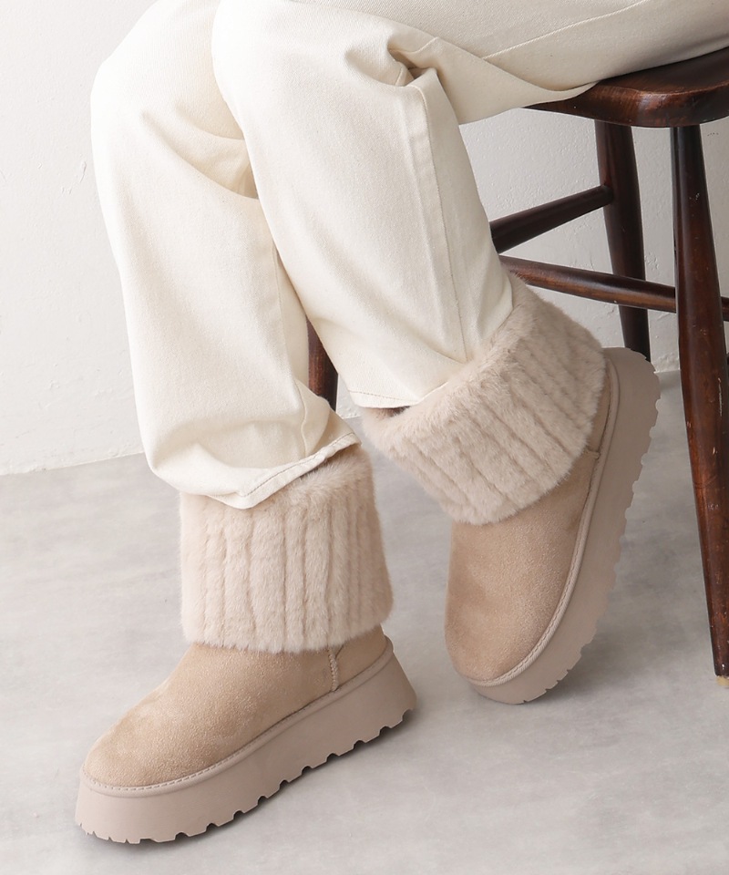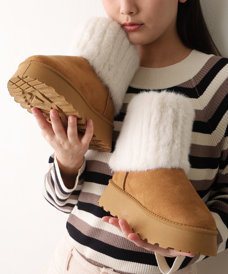 厚底 ファーカバー ミニ丈 ムートンブーツ