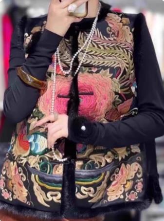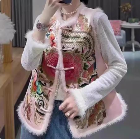 新中華風 チャイナボタン ベスト アウター レディース 秋冬 ヘビーワーク 刺繍 厚手 大人の魅力 保温 ベスト 中国式上着 トップス
