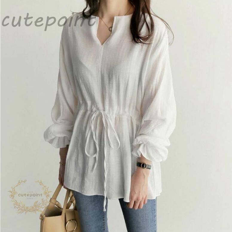 ブラウス 長袖 レディース おしゃれ 白 ブラウス シャツブラウス チュニック 春 夏 バルーンスリーブ ウエストゴム プルオーバー ス vネック きれいめ