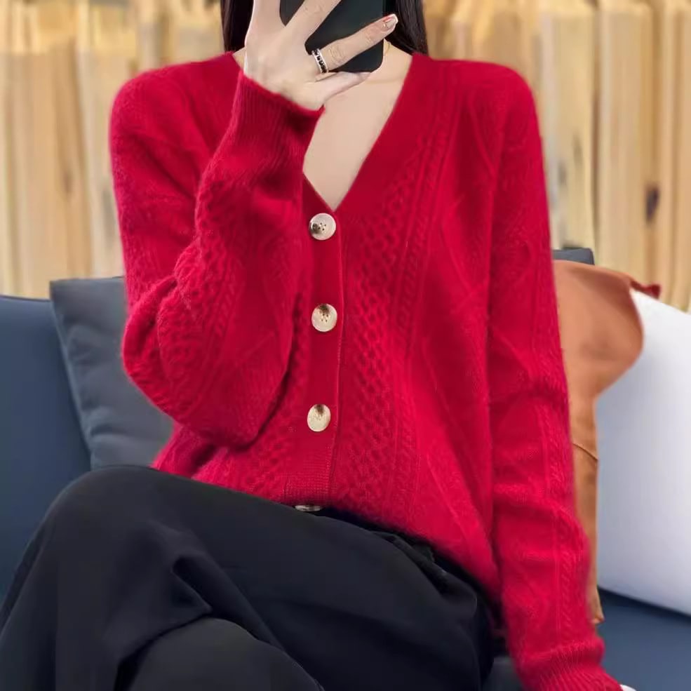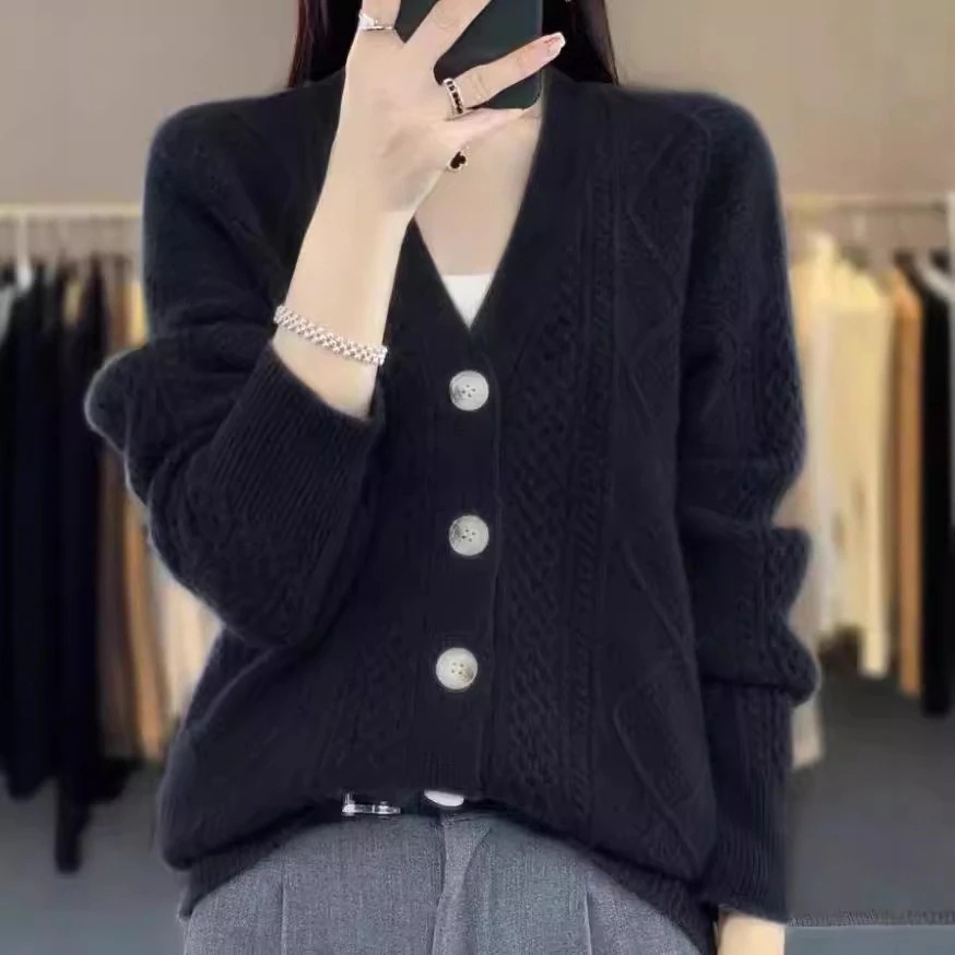 秋服 シンプルダイヤモンドVネックニットカーディガン 無地 長袖トップスニットシアーシャツ 日韓国ファッション