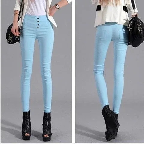 脚長効果!スキニーパンツレディース多色多サイズ伸縮性パンツ キャンディカラー 大きいサイズ ハイウエスト 小足クロップドパンツ韓国ファッション