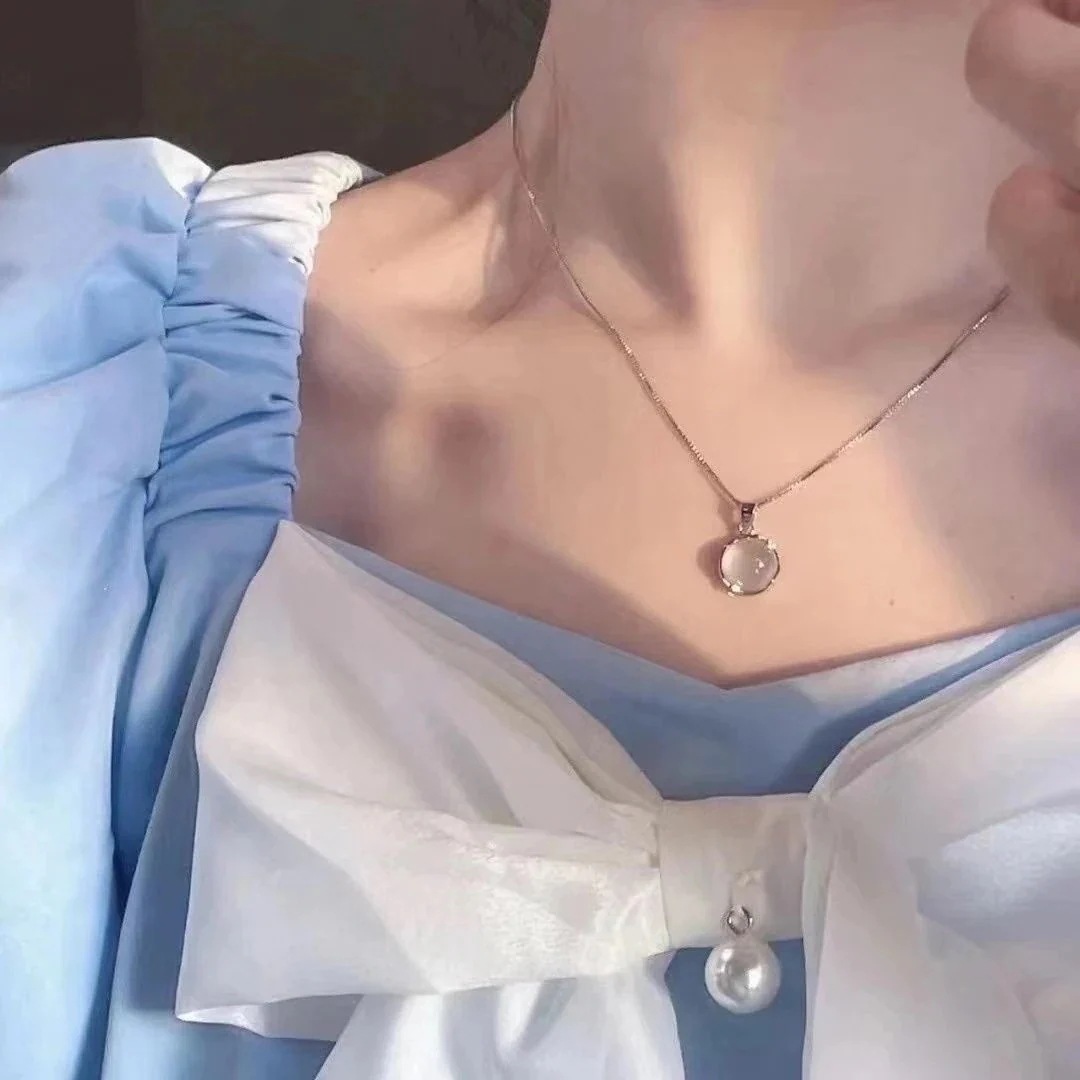 美しい首元ネックレスムーンストーン ホワイトカルセドニー ギフト925スターリングシルバーネックレス鎖骨の鎖ペンダント女達ミニマリスト2022年新規 流行り エレガント プレゼント ネックレス ピアス
