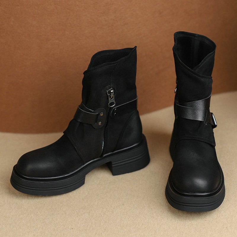 SMFashion【輸送費無料】通年で使用可能 ショートブーツ 英国スタイル レトロ ローヒール ショートブーツ 厚底 chic风格 ラウンドトゥ ショートブーツ 太ヒール レディース