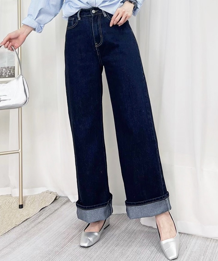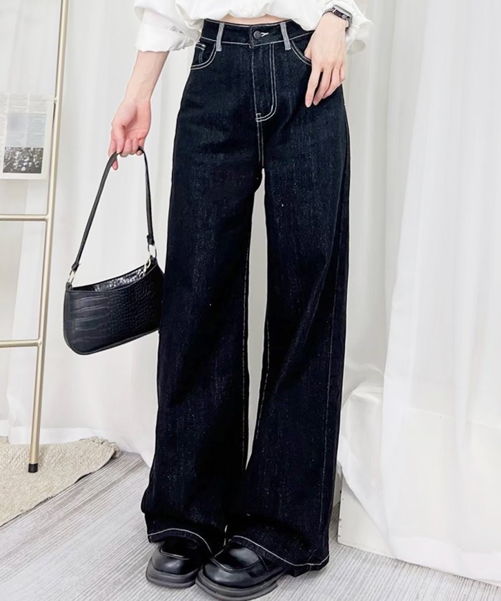 【S~LL】ラメ入りデニム素材 ワイドパンツ (丈標準74cm) レディース 股上深め ボトムス デニム ジーンズ 股下74cm ハイライズ ミドルライズ ハイウエスト ワイドパンツ ストレート