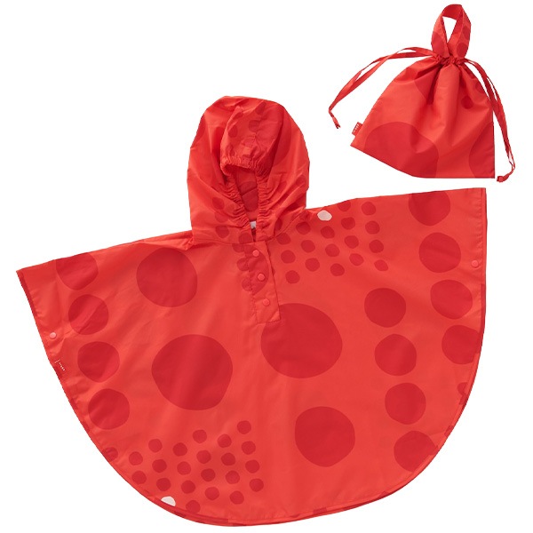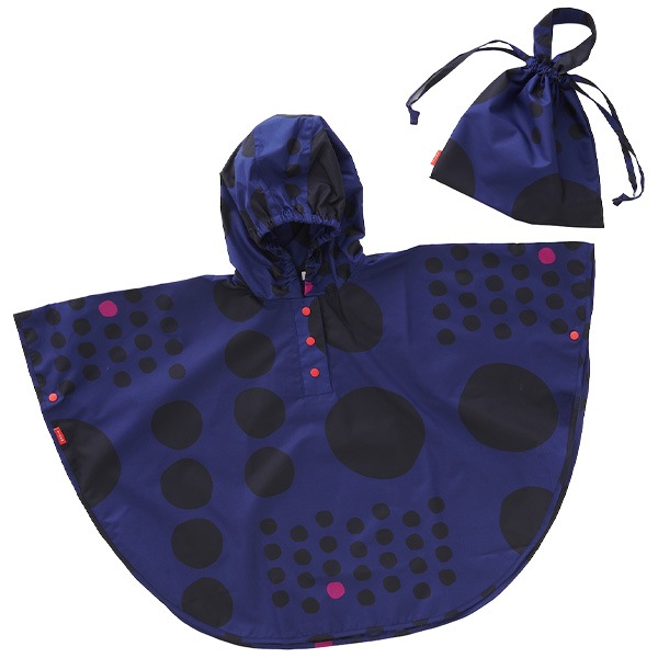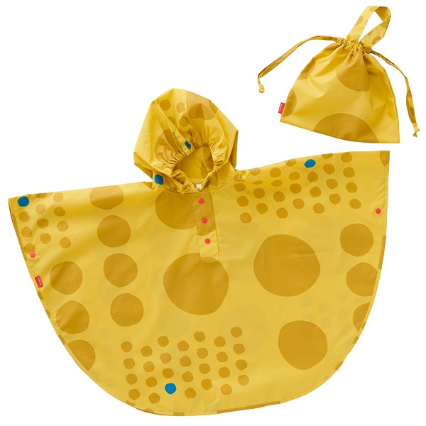 392 plusmキッズ レインコート レインポンチョ カッパ 水玉 ドット ジュニア 男女兼用 女の子 男の子 maru kids M 100~120cm 雨 収納袋