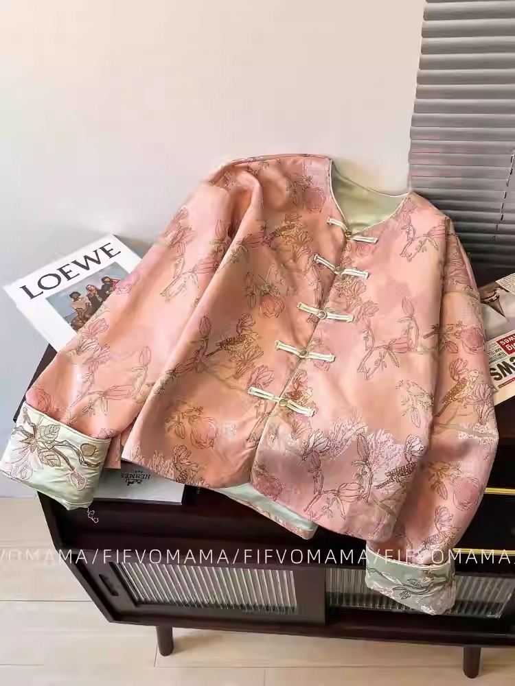 新中式 盤釦(パンコウ) ジャカード 宋錦 アウター レディース 大人の魅力 春秋夏 セレブ 気品 国潮風 重厚 刺繍 タンコート トップス