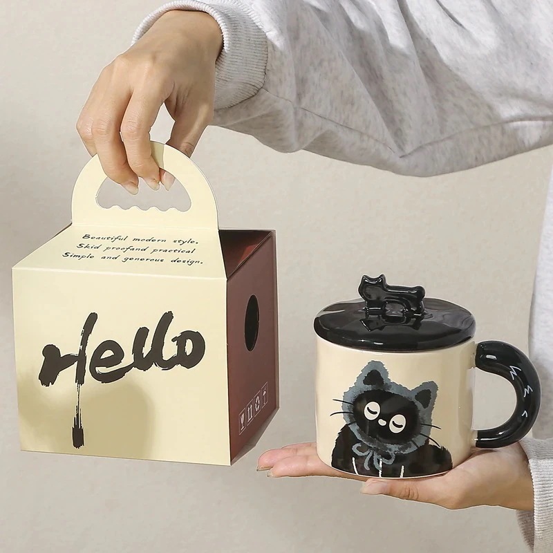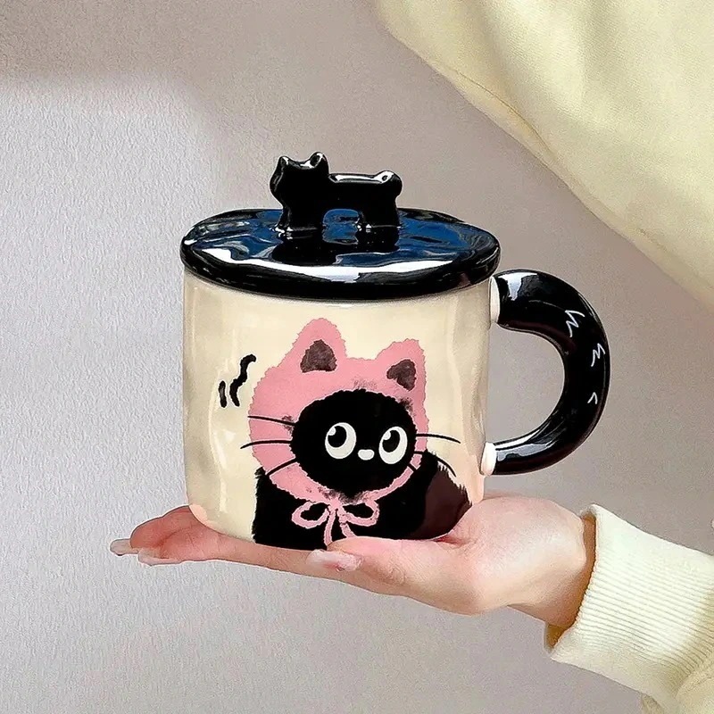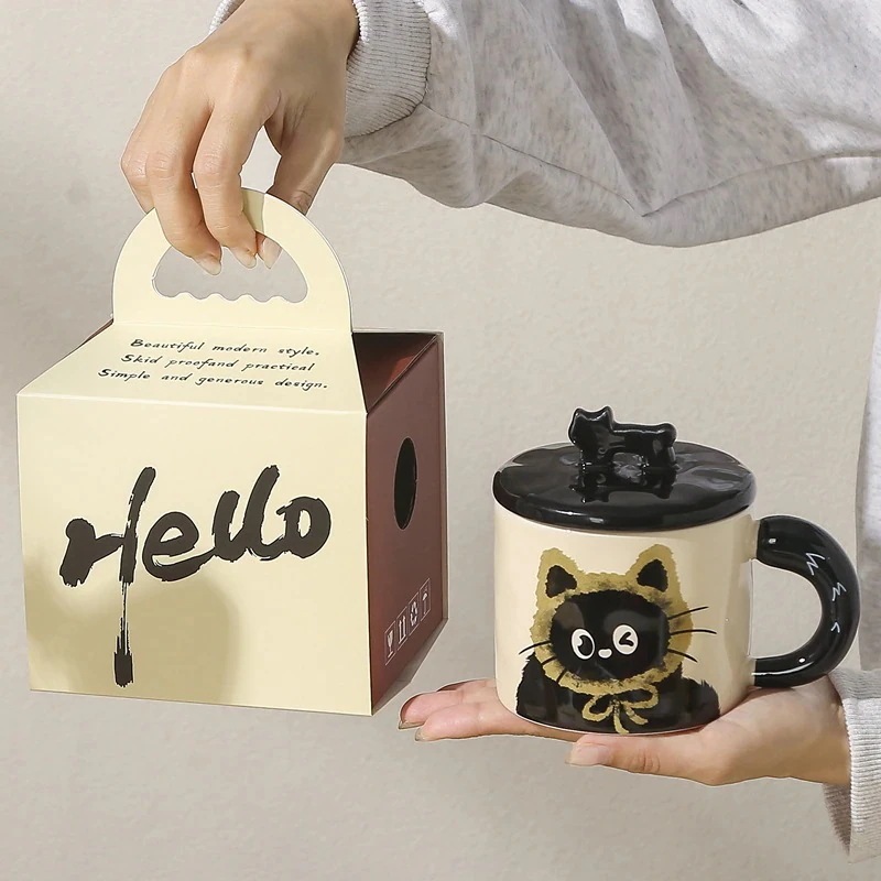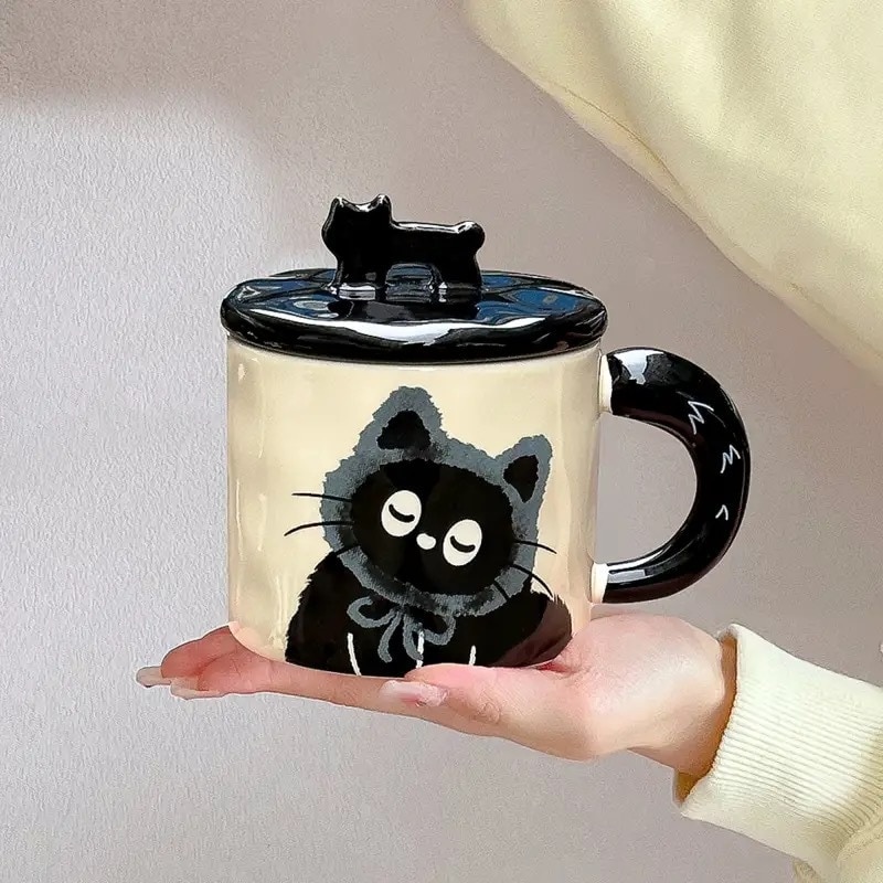 可愛い猫の陶器マグカップ実用的な親友への贈り物家庭用コップ・オフィス用コーヒーカップ蓋付き
