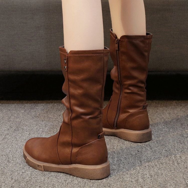 オーバーサイズの英国風レトロミドルブーツ 2025秋冬新作フラットダウンファッショントレンドマーチンブーツレディースショートブーツ