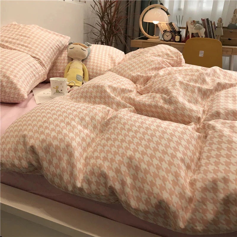 布団カバー insレトロ風磨毛シート 布団カバー 宿舎シングルペア 寝具4点セット