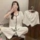 パジャマ 2025 新作 スリープウェア 女性用 春夏 3点セット 半袖 長ズボン かわいい ゆったり ルームウェア 韓国ファッション