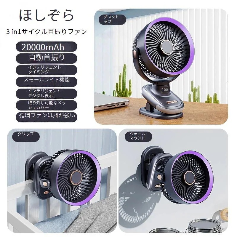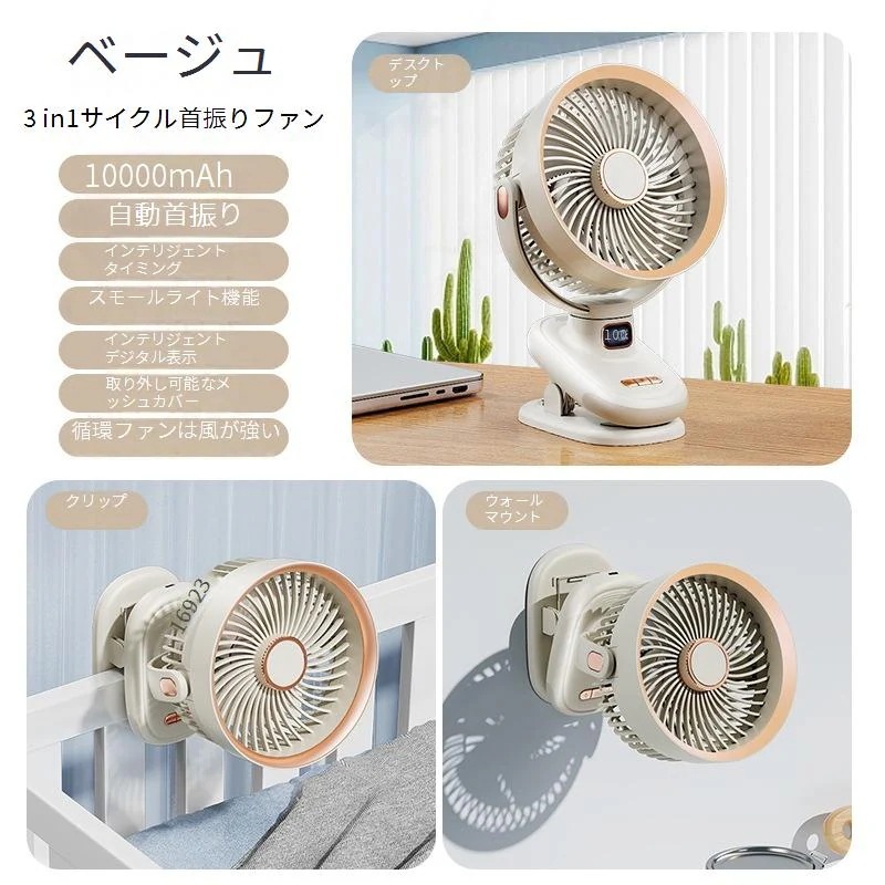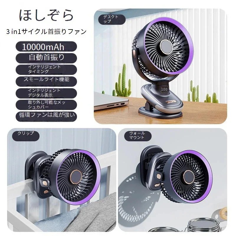 扇風機 クリップ 自動首振り クリップ式扇風機 1台4役 卓上 ミニ扇風機 USB充電式 5段階風量調節 角度調整 12H連続稼働 小型 静音 車載 車用ベビーカー扇風機 夏