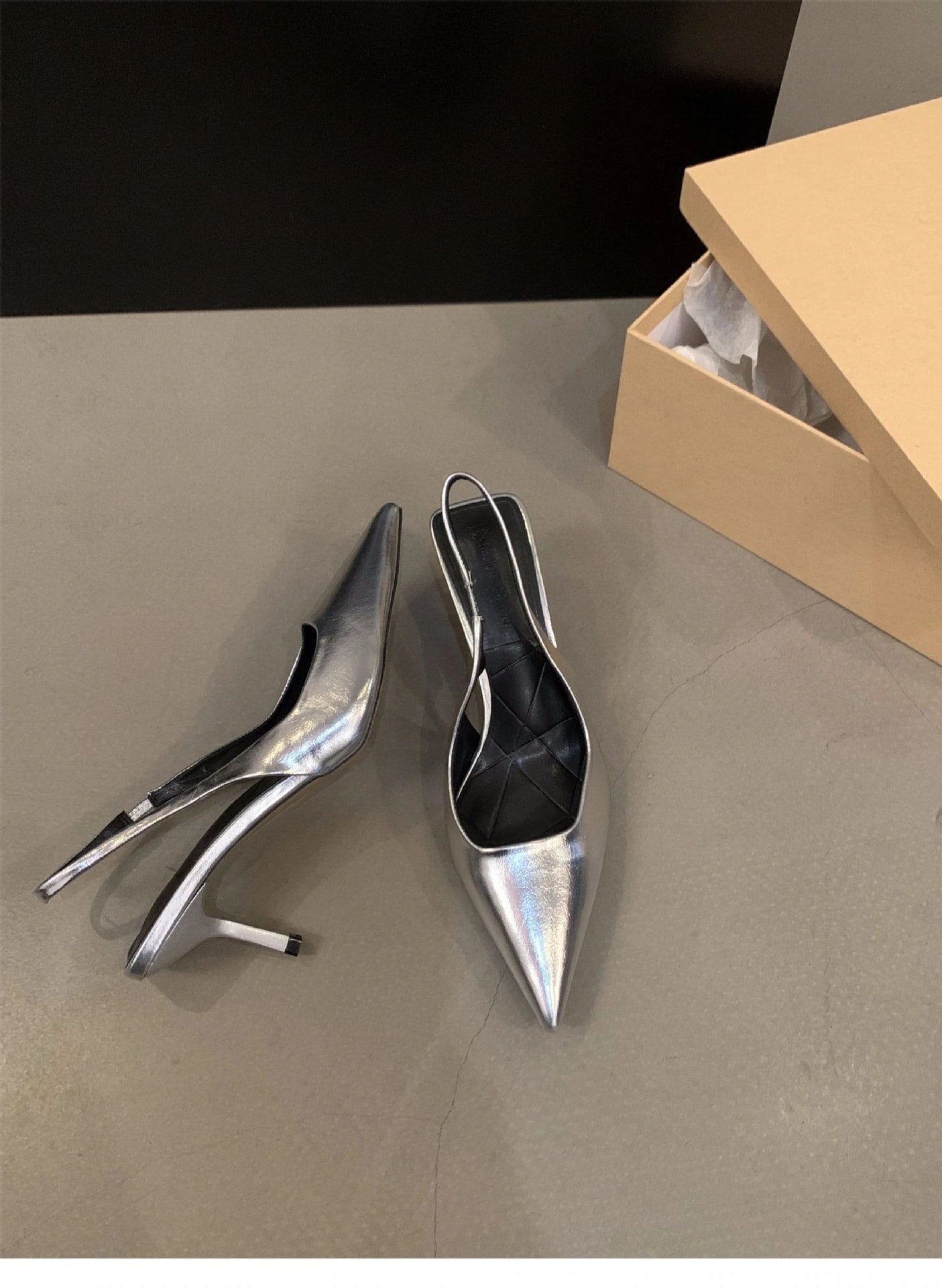 スタイルアップ!ヒールパンプス シルバーハイヒールポインテッドトゥ大きいサイズ包頭サンダル妖精靴2025春夏新作フレンチスタイルバック空靴
