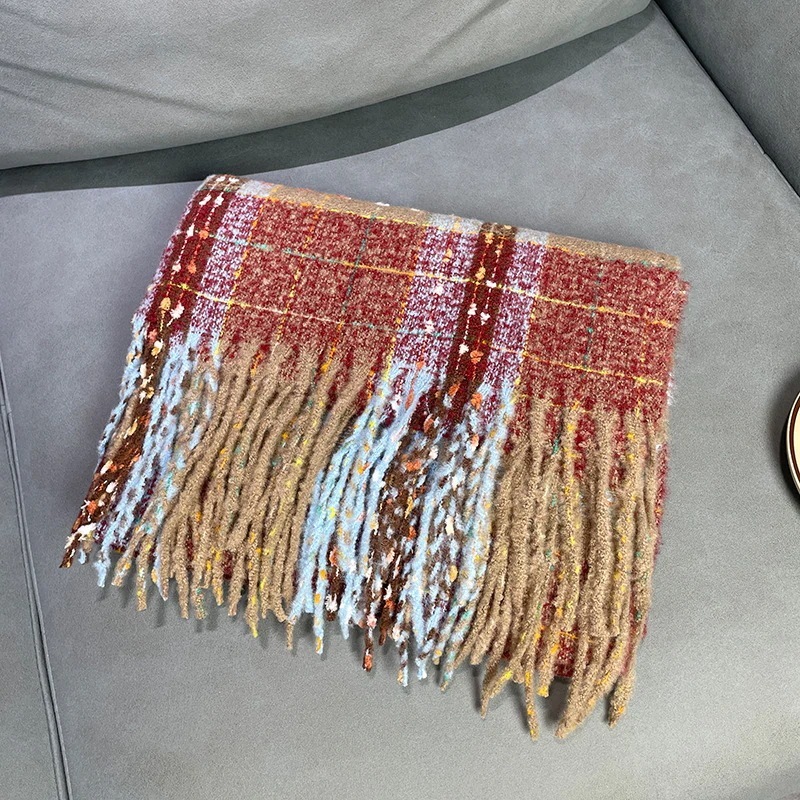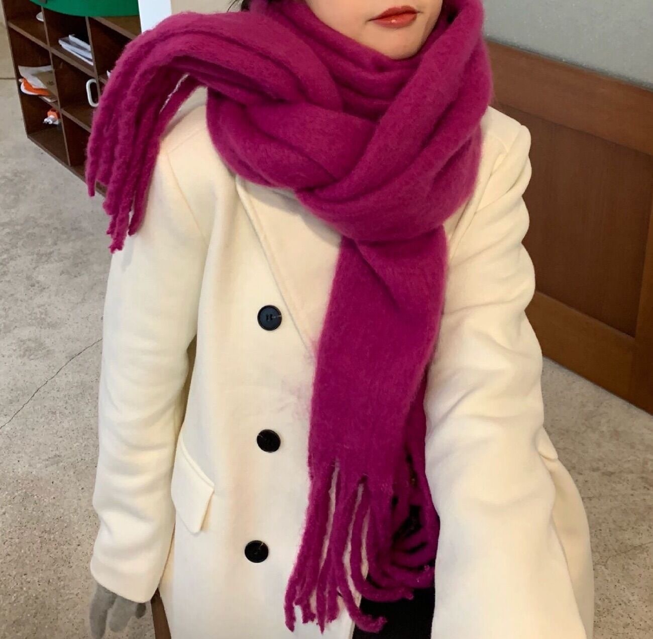 【新作】マフラー レディース ストール ショール ふわふわ 起毛 ボリューム 230*35cm 大判 太フリンジ 無地 ロング丈 秋冬