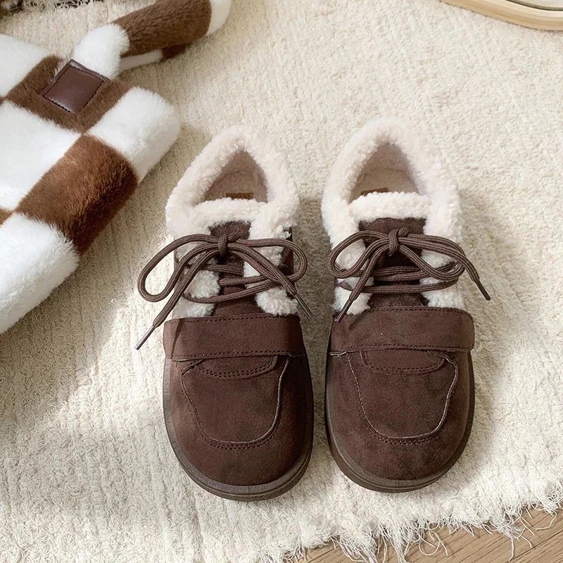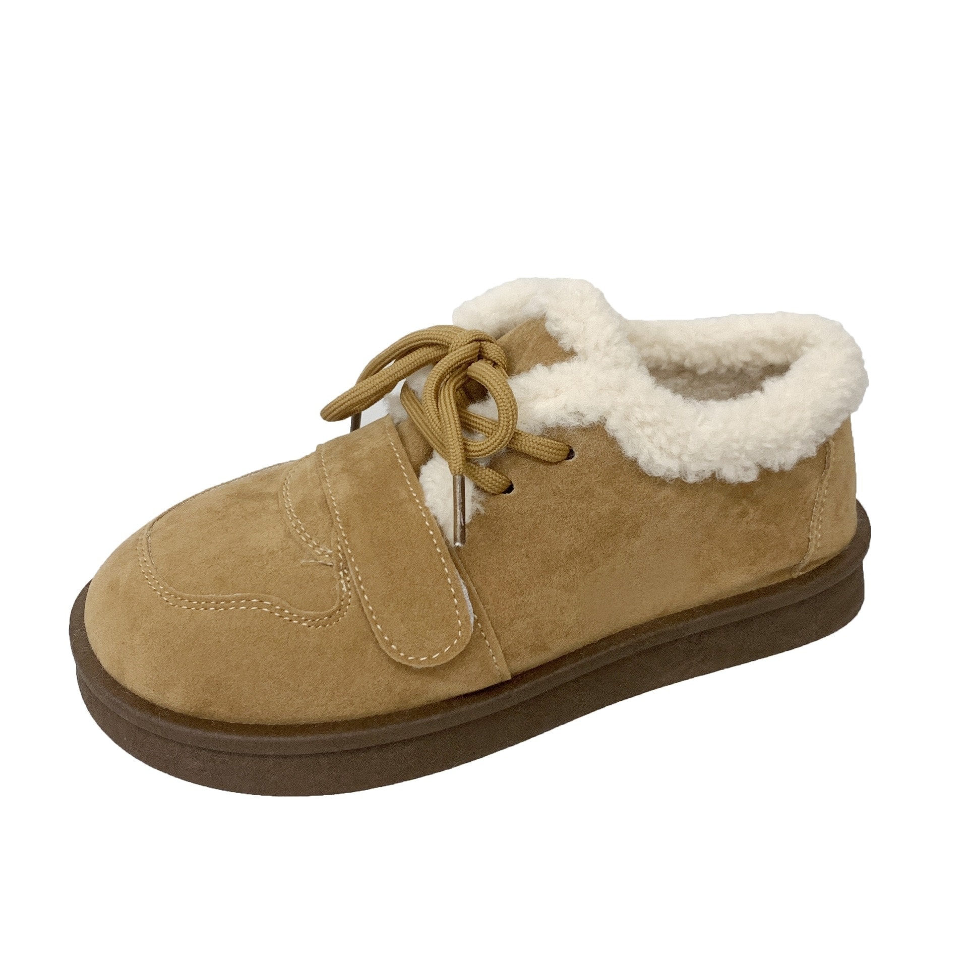 韓国ファッション レディース モカシン 暖かい百掛けカジュアル靴 ブラッシュド・レザー・コットン・シューズ