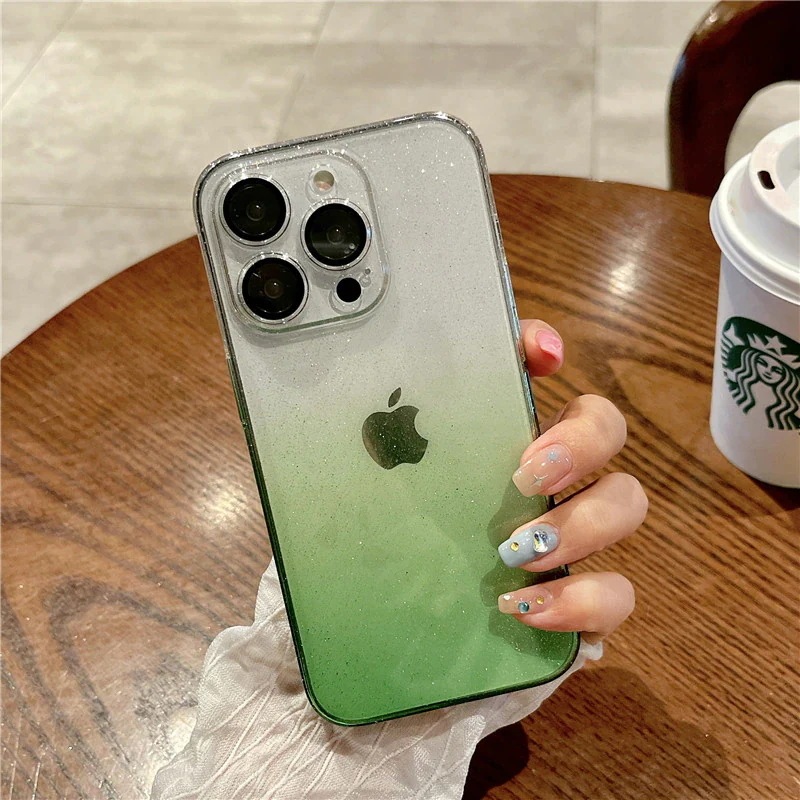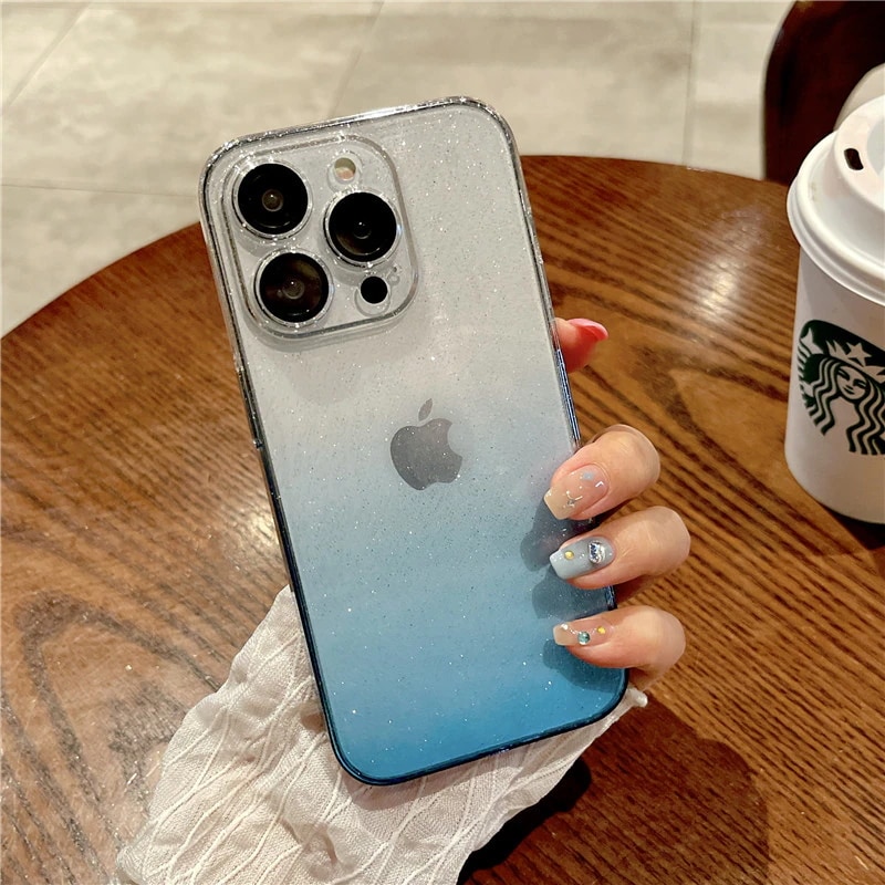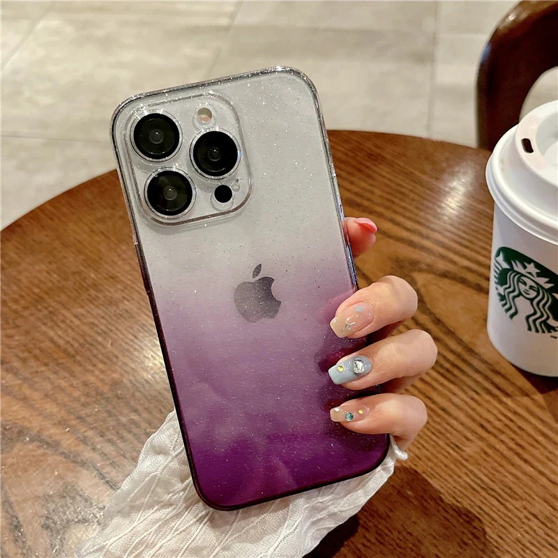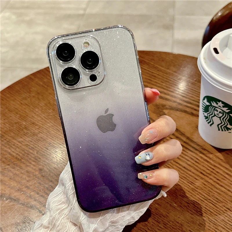 透明 クリア グラーデション スマホケース iphone15 ケース 全面保護 ガラスレンズフィルム付き キラキラ iphone ケース