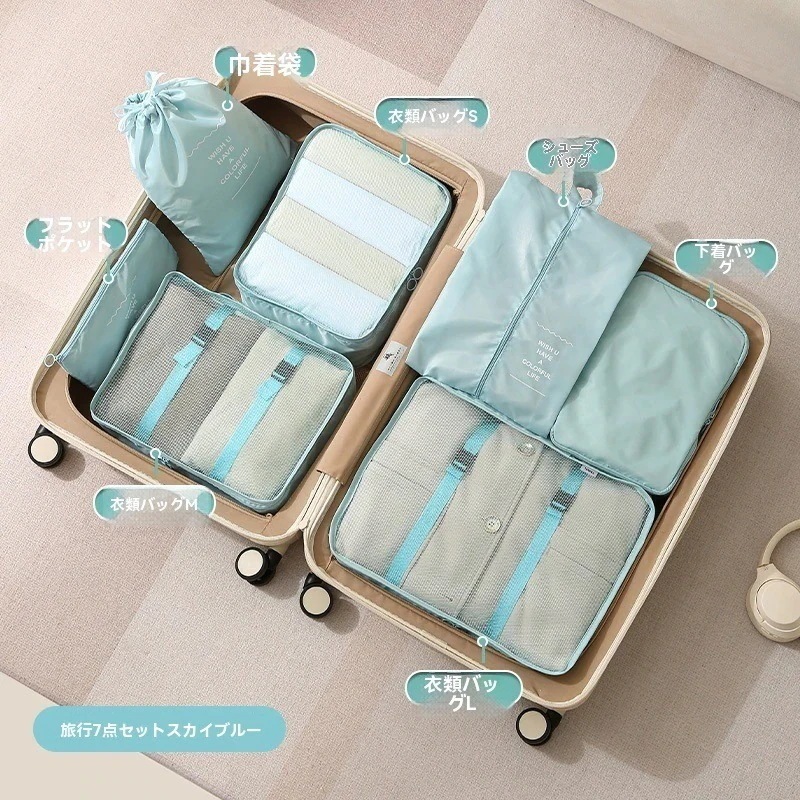 トラベルポーチセットトラベルポーチ7点セット 圧縮 ポーチ バッグ トラベル 押すだけ 旅行用 服 旅行 ダブルファスナー 圧縮袋 セット 繰り返し使える おしゃれ レディース トラベルバッグ 大 大