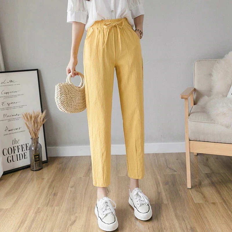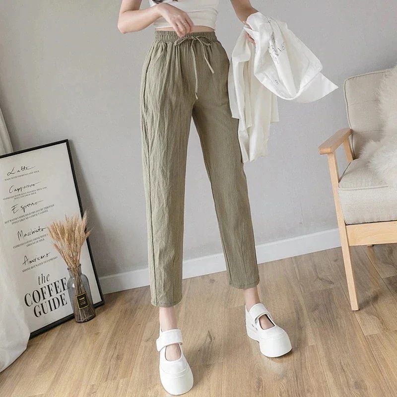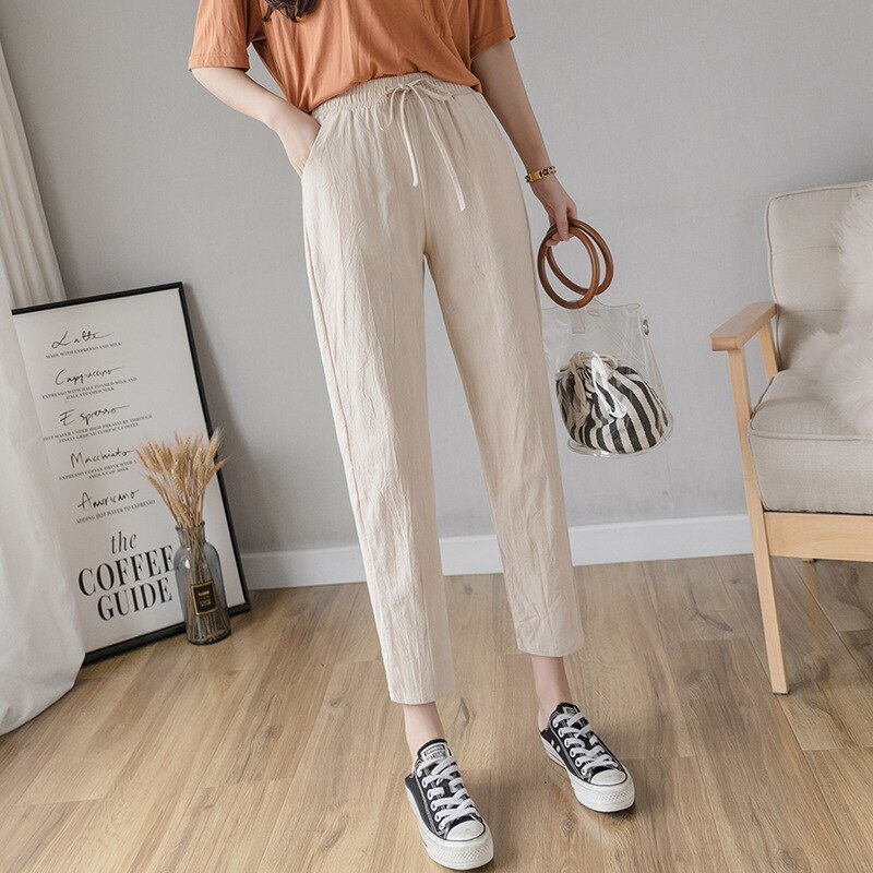 綿麻 テーパードパンツ 素材で選ぶ!リネンパンツ 九分丈パンツ レジャー アイスシルク リネンパンツ 八分丈パンツ 軽薄 ドローストリング スラックスパンツ ズボン 韓国 大きいサイズ
