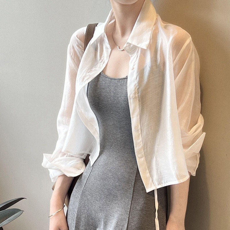赤字覚悟ワンコインお試し価額 -7℃ 冷感 UVシアー日焼け止め 薄手 長袖 体型カバー シャツ トップス 冷房対策 紫外線対策 韓国ファッション レディース シャツ