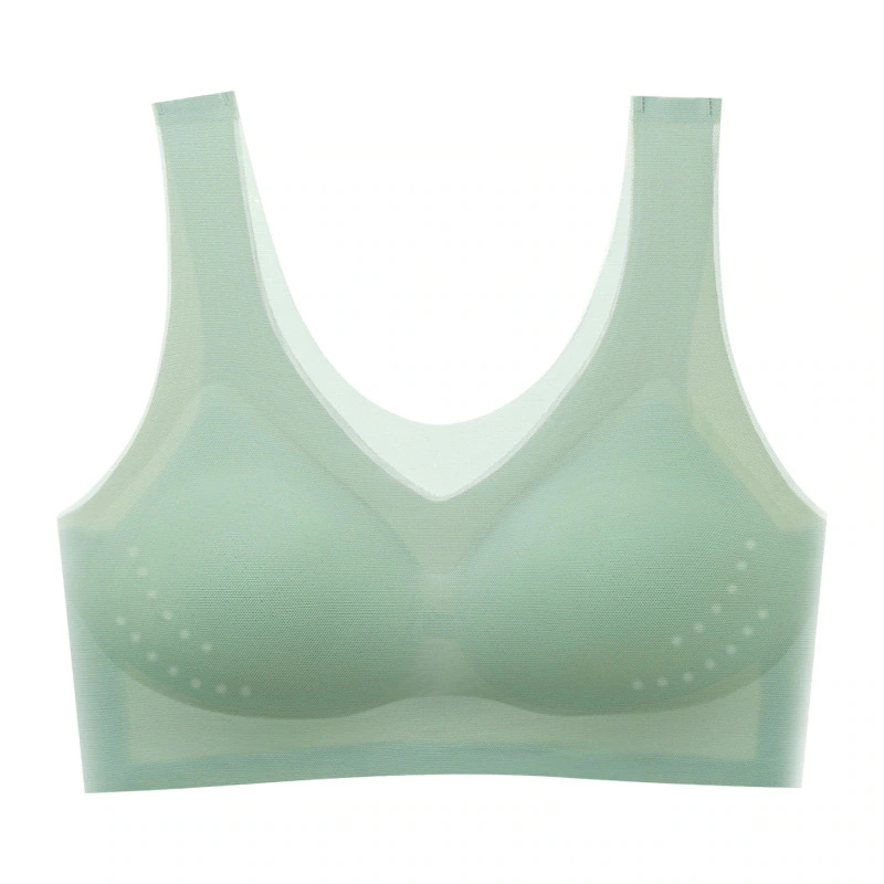 超薄アイスシルク ブラ 極薄 涼感ブラ 接触冷感 ブラジャー 大きいサイズ シームレス ノンワイヤー 夏用ブラ ナイトブラ 小さく見せるブラ 通気性 薄い スポーツブラ クール