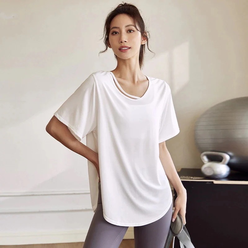 気質 ヨガウエア 夏 大きめサイズ 半袖トップス 快適 ヨガ ランニングウェア 速干 レディース スポーツウェア