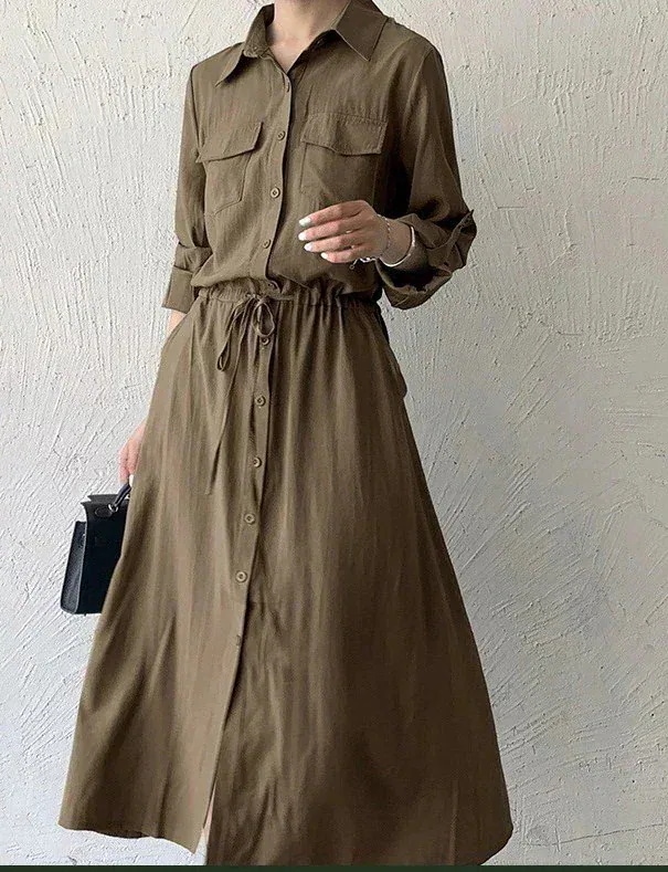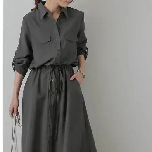【急速出荷】2025新作 ワンピース 夏 ロング シャツワンピース レディース 開き襟 カジュアル セミロングワンピース おしゃれ 通勤 OL 韓国ファッション ワイシャツ ワンピース
