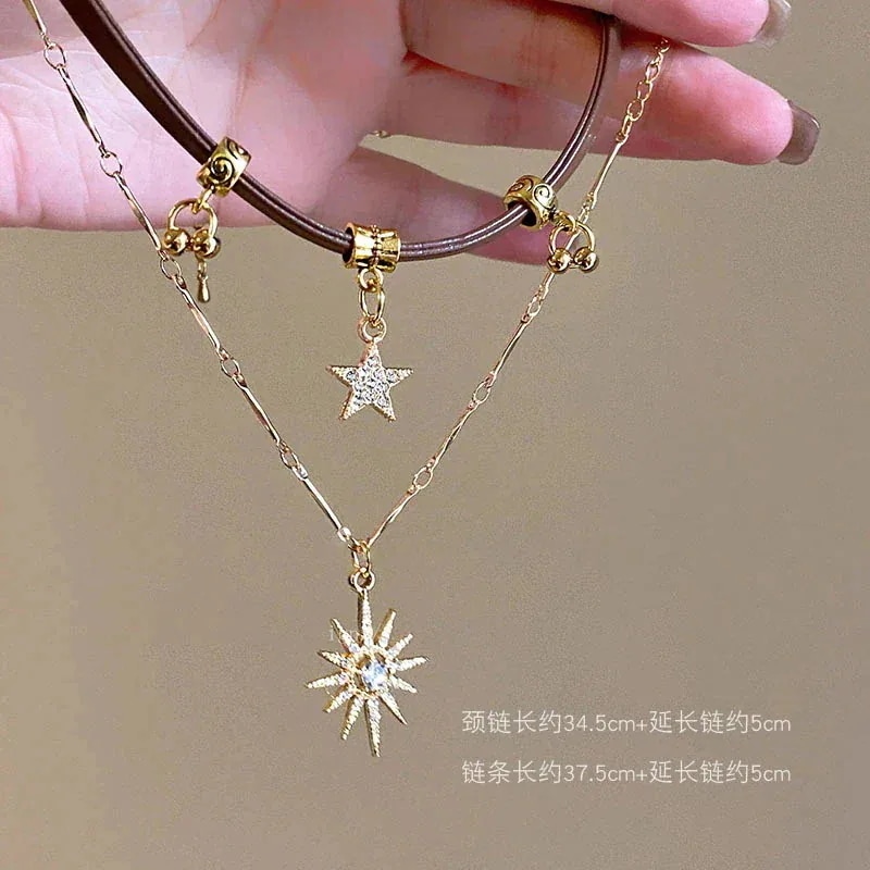 メラド太陽スタージルコニアネックレス女性秋と冬の光高級レトロセーターチェーン甘いクールなスタイルクリスマスジャンパーチェーン潮