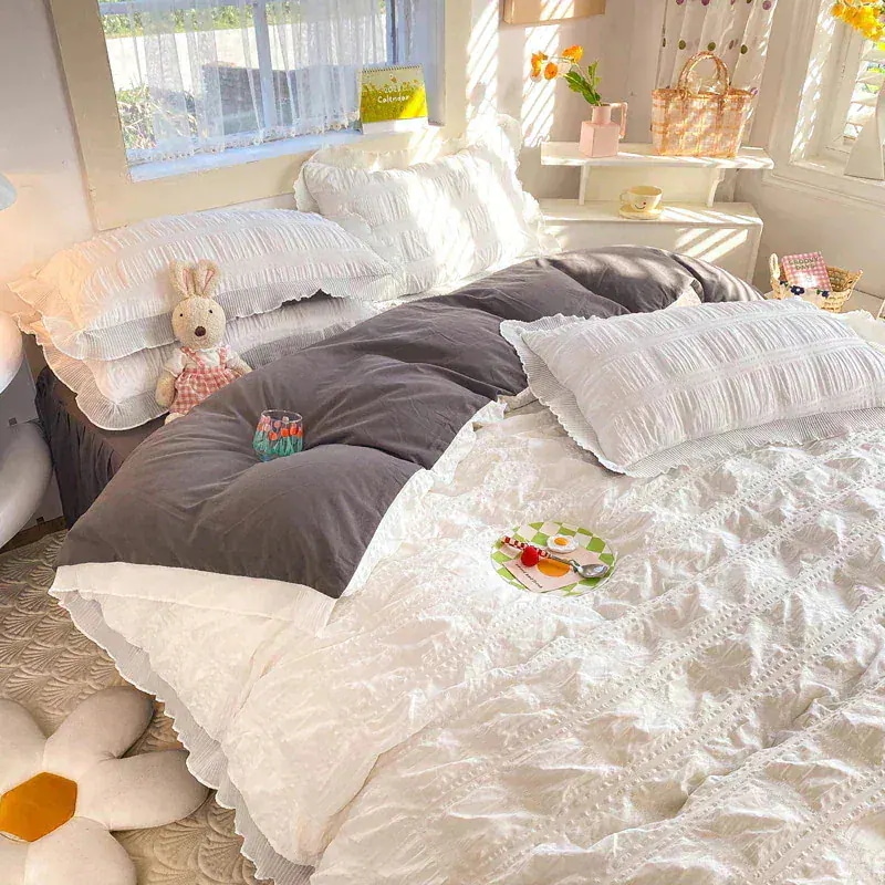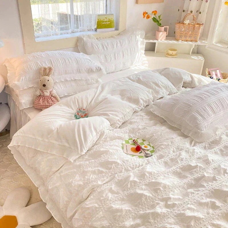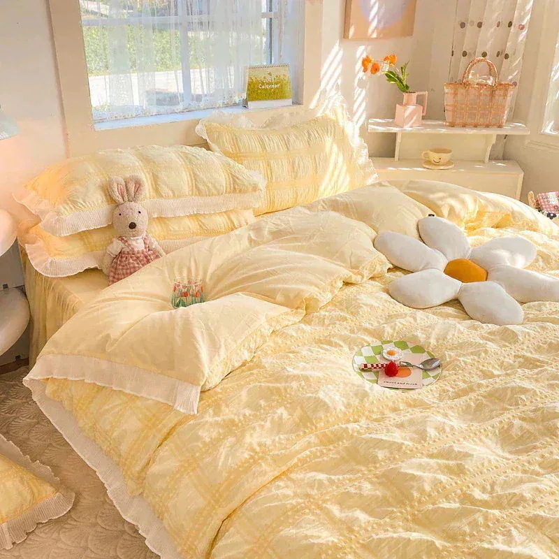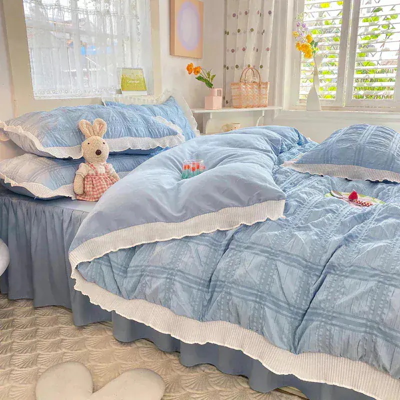 韓国のかわいい 3点セット/4点セット 枕カバー 春夏 布団カバー寝具 コットン 薄手 柔らかく肌触り レースベッドスカート