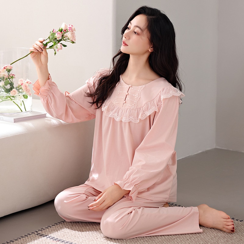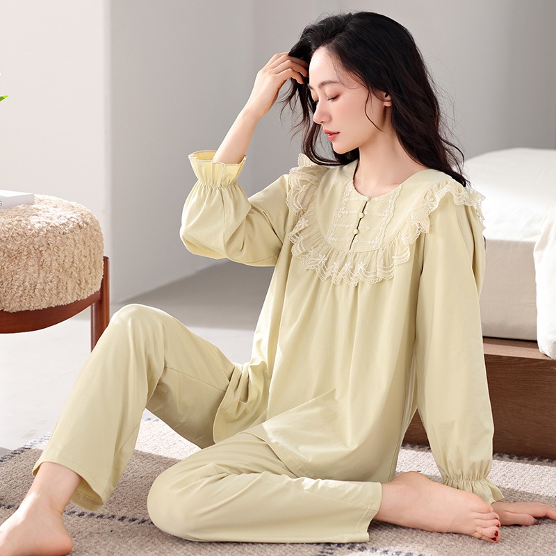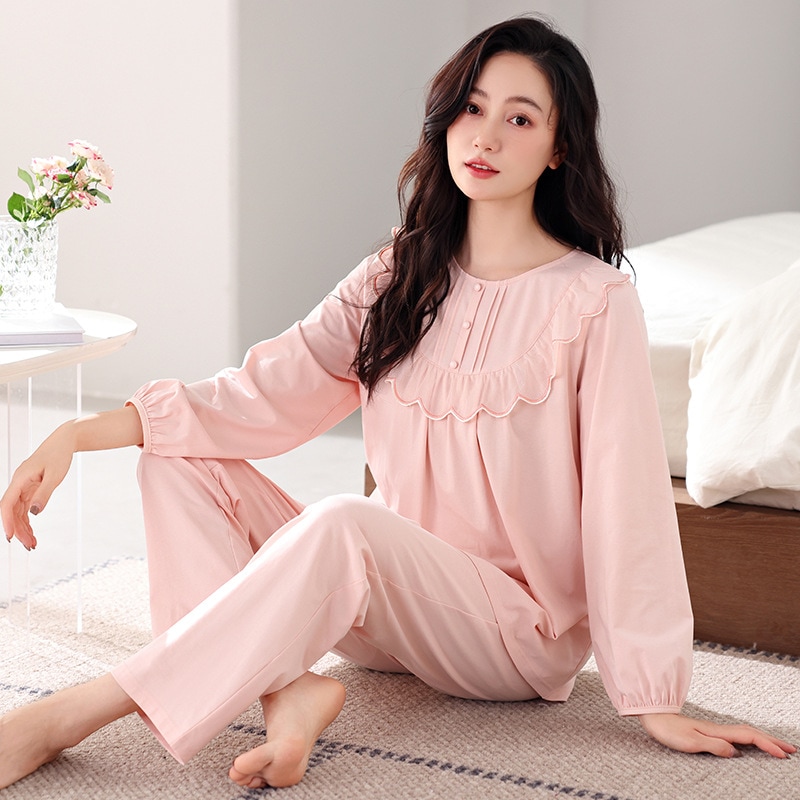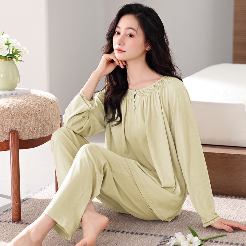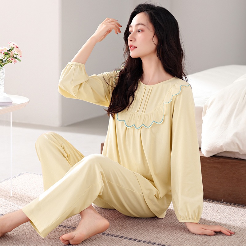 パジャマ女性春秋長袖純綿ホームウェア新型秋冬薄型ラージサイズ爽綿スーツ