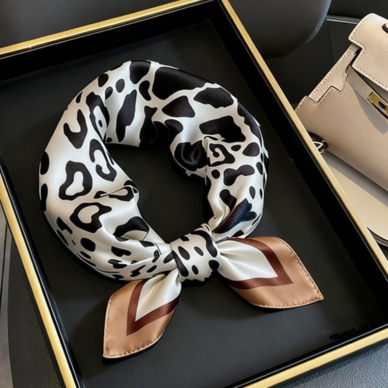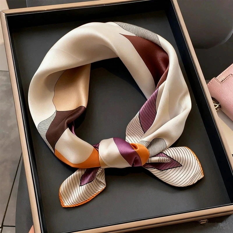 スカーフ夏レディーススカーフ シルク100% 正方形 53cm サマースカーフ正方形 通勤 オフィス制服用スカーフ グリーンオレンジ 花 男士女士